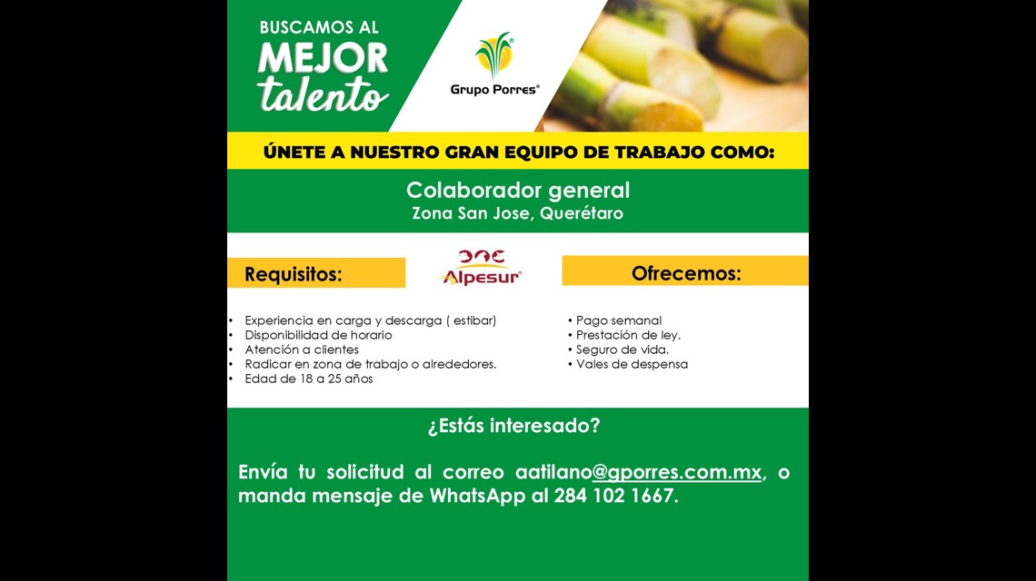 Somos una empresa mexicana, con una trayectoria exitosa en la industria avícola, la agroindustria azucarera y la industria de nutrición animal, tenemos precencia en distintos estados de la republica mexicana, como Veracruz, Puebla, Michoacan, Tabasco, Chiapas... Nos enorgullece ser una organización sólida y comprometida con la calidad y el servicio. Nuestra Cultura Corporativa se basa en Nuestras Virtudes y Principios de Liderazgo, donde más de 6 mil personas trabajan día a día con el único Propósito de: Qué a todos los que traten con Grupo Porres, les vaya bien… y tú eres lo más importante.
